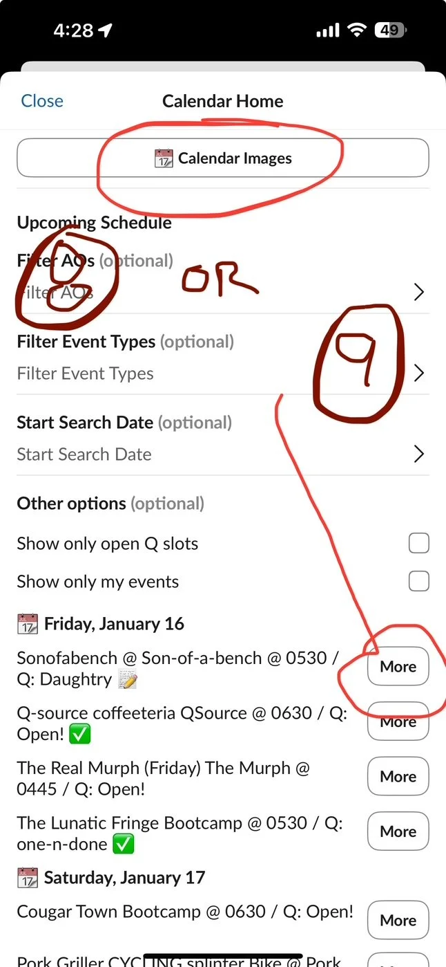 The new software will Automatically post the AO’s pre-blast to the 1st F channel the DAY BEFORE the AO. If no Q has taken the AO, it will show up as “empty” and either the Site Q or any other Pax can “take the Q” right in the pre-blast. No special instructions or tools necessary.