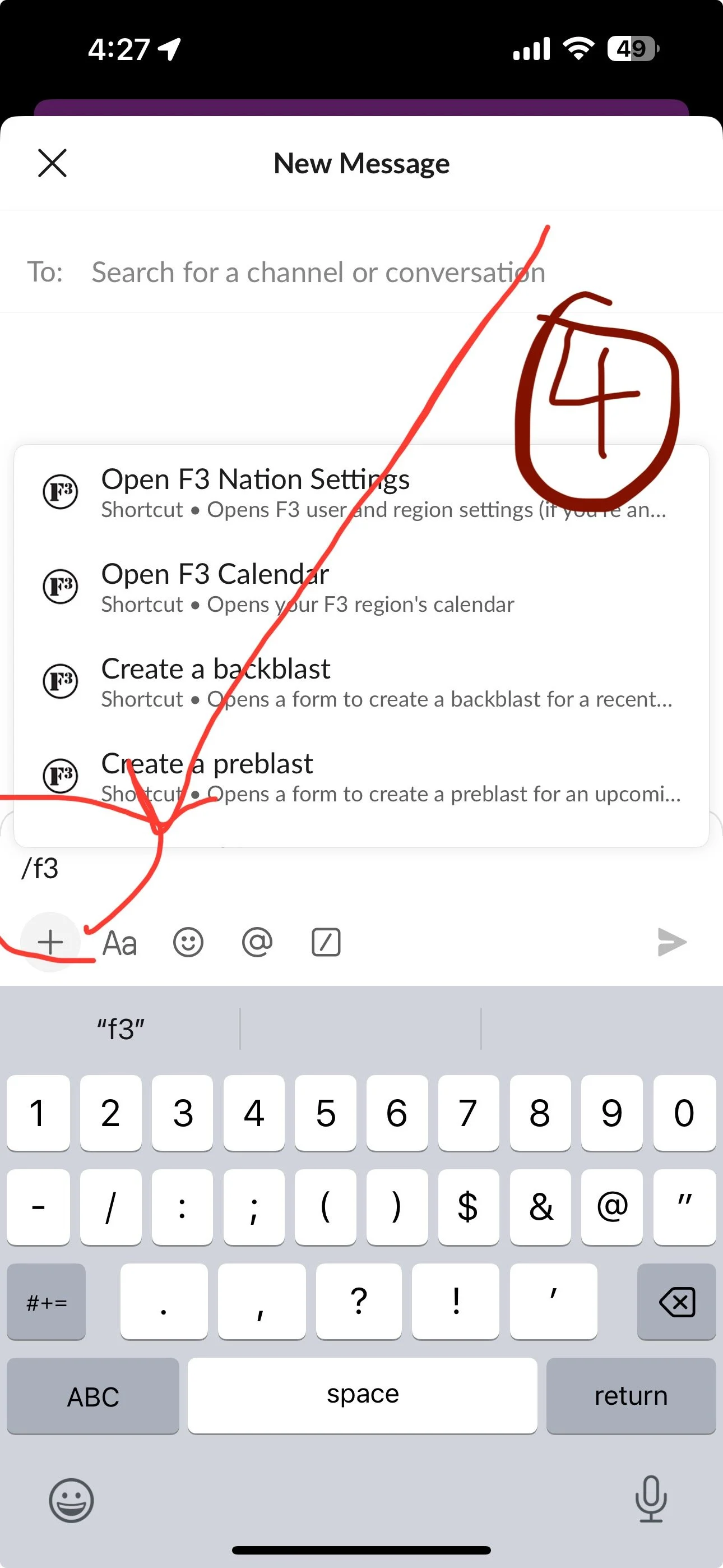 After you have Q’d the workout, simply type /F3 into any message prompt in Slack and select “Back-Blast”.