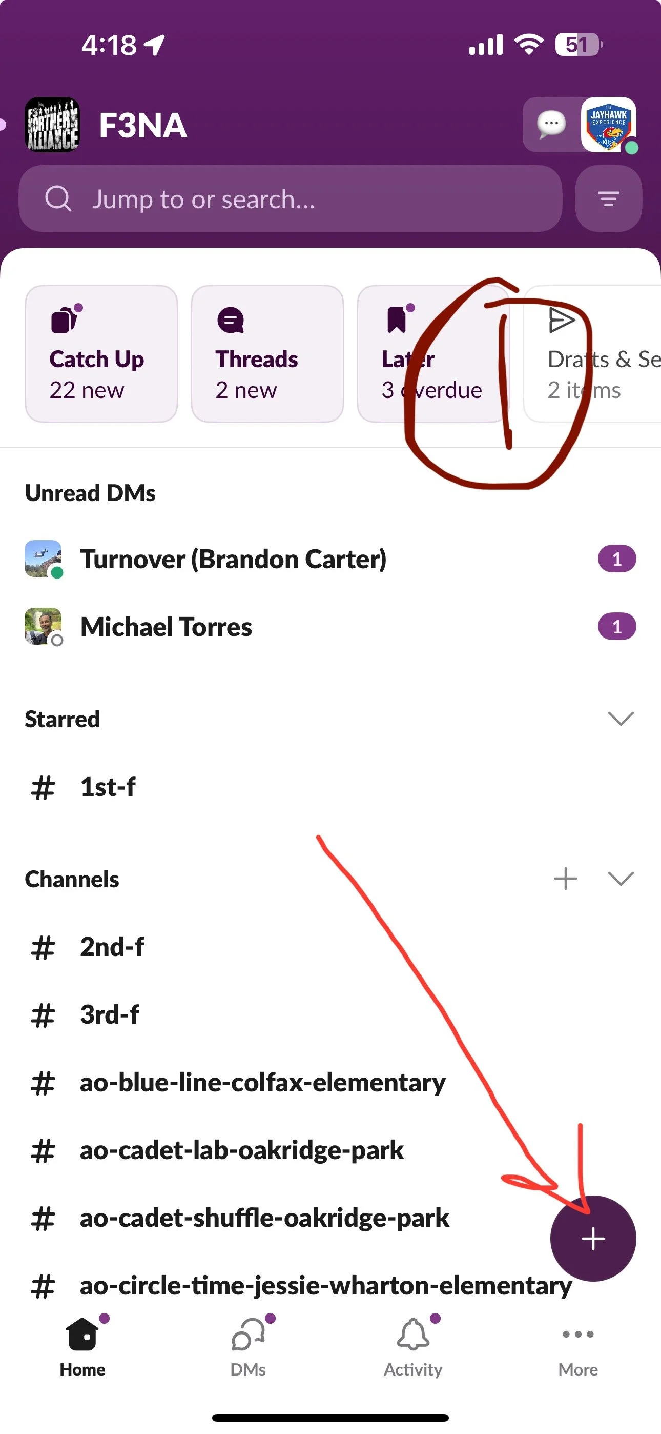 STEP #!: Get into your slack account. Push the purple + button
