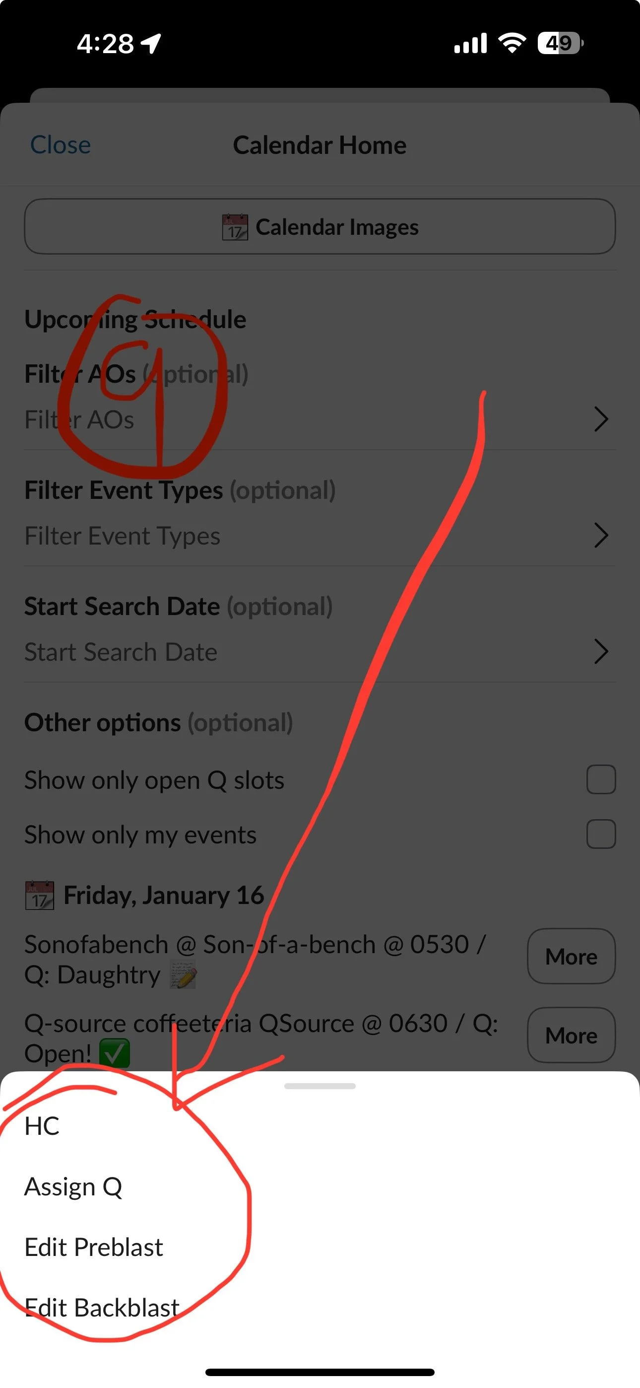 PAX VAULT does not offer the functionality to sign up for or edit Q’s or preblasts… it is JUST a visual calendar. We are working on fixing this.