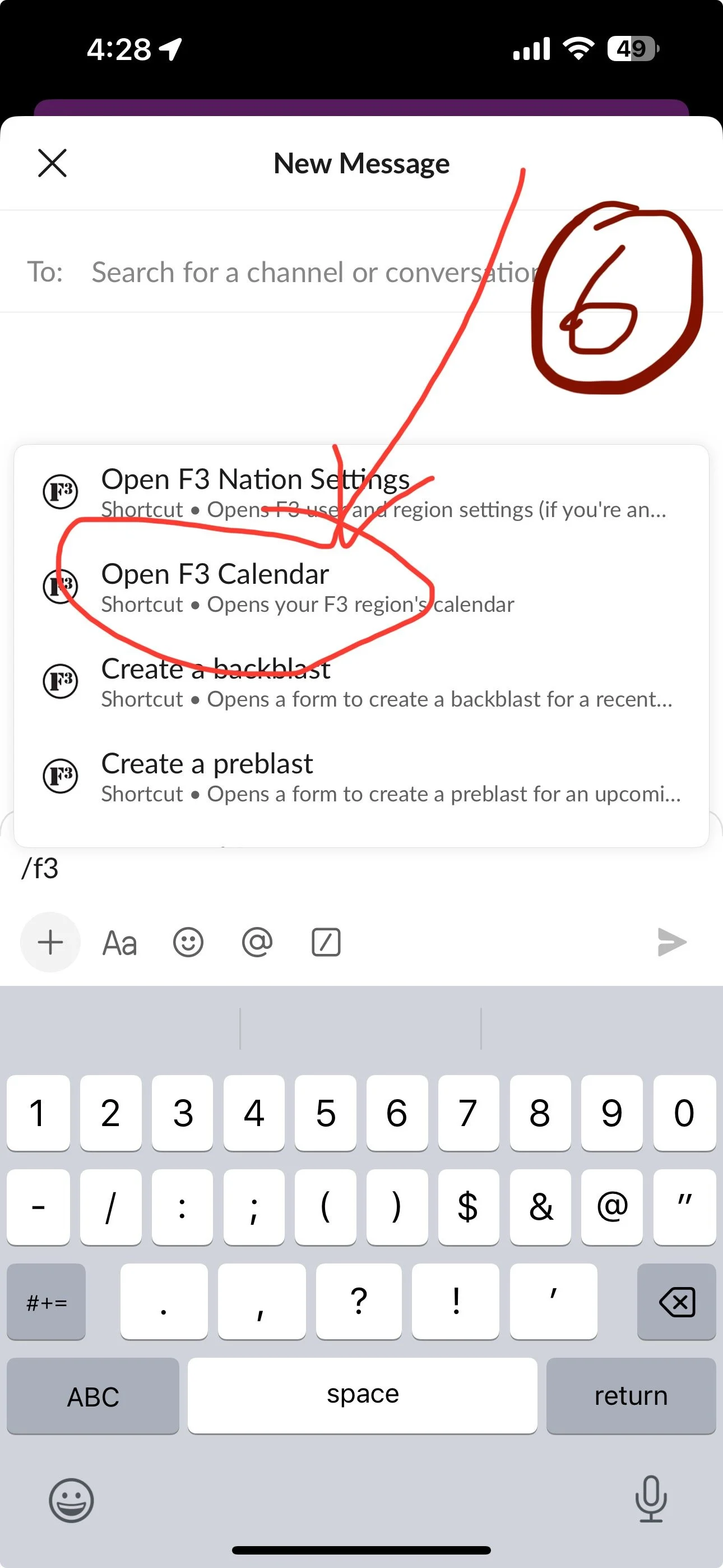 24 hours before you Q, Slack will send you a DM from “F3 Nation” reminding you of your Q.